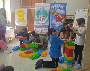 15 czerwca ponownie udałam się na Nowosądecczyznę, tym razem moim celem była Nawojowa — urocza miejscowość z zamkiem. Przywitały mnie bardzo sympatyczne panie bibliotekarki Magdalena i Izabela. Pierwsze warsztaty przeprowadziłam w bibliotece dla dwóch klas SP. Młodzież podjęła wyzwanie i z wielkim zaangażowaniem wykonywała ćwiczenia, które sprawiły, że inaczej spojrzeli na problem niepełnosprawności.