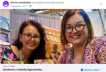 14 grudnia miałam zaszczyt uczestniczyć w spotkaniu online prowadzonym przez Sandrę Langer z teamu Zdrowo Bookknięte Recenzje tego teamu są niesamowicie oryginalne, rzetelnie opiniują książki, a zamieszczane grafiki to istny majstersztyk. Od dawna obserwuję mrówczą pracę Sandry i jestem pełna podziwu. Dlatego z ogromną radością przyjęłam zaproszenie na wywiad online.